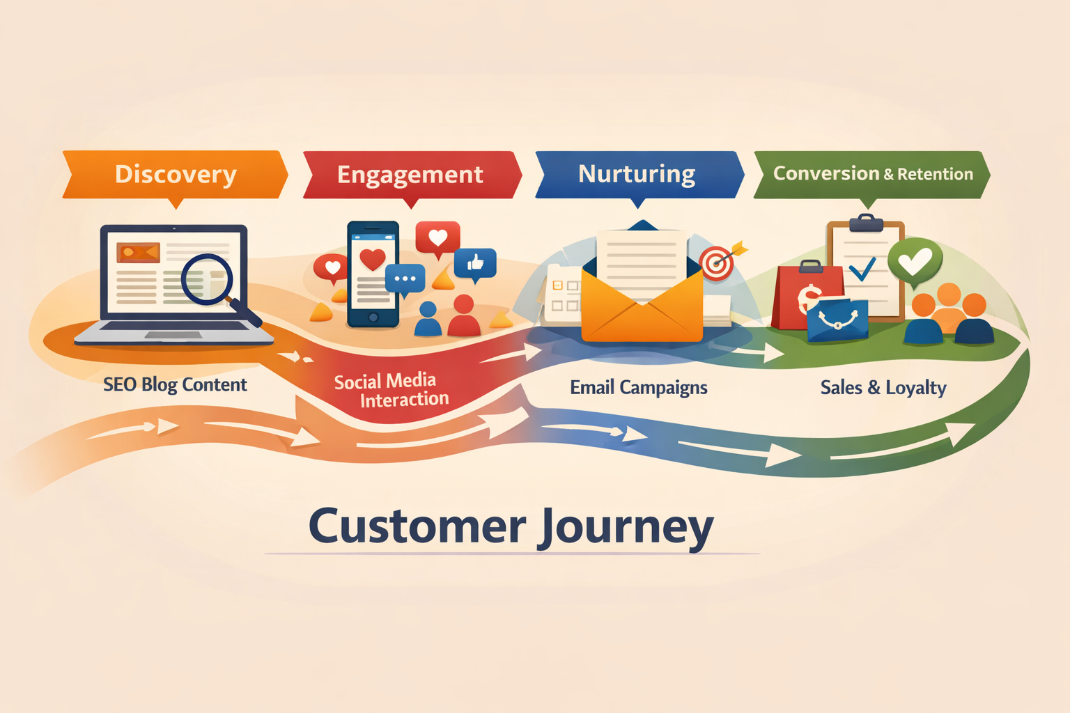 Imagine your marketing as a flywheel. Each spin builds on the last, accelerating over time. Consistent blogging, social media posting, and email marketing work together to create this momentum, building brand awareness, nurturing leads, and driving conversions far more effectively than any single channel could alone.